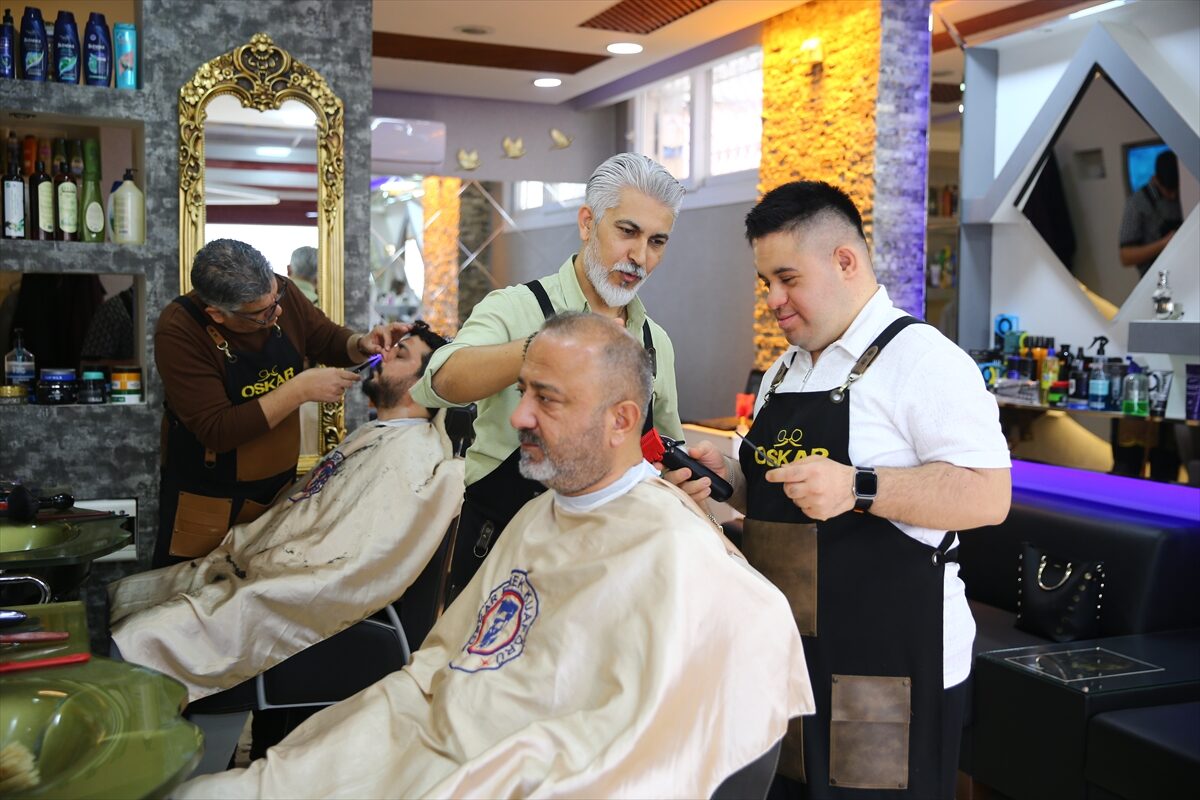 Adana’da yaşayan Down sendromlu 28 yaşındaki Sefa Oğuzhan Bulut, 5 yıldan bu yana çalıştığı berber salonuna hem azmi hem de güler yüzüyle neşe katıyor.