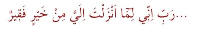 Okunuşu : “…Rabbi inni lime enzelte ileyye min hayrin fakiru”