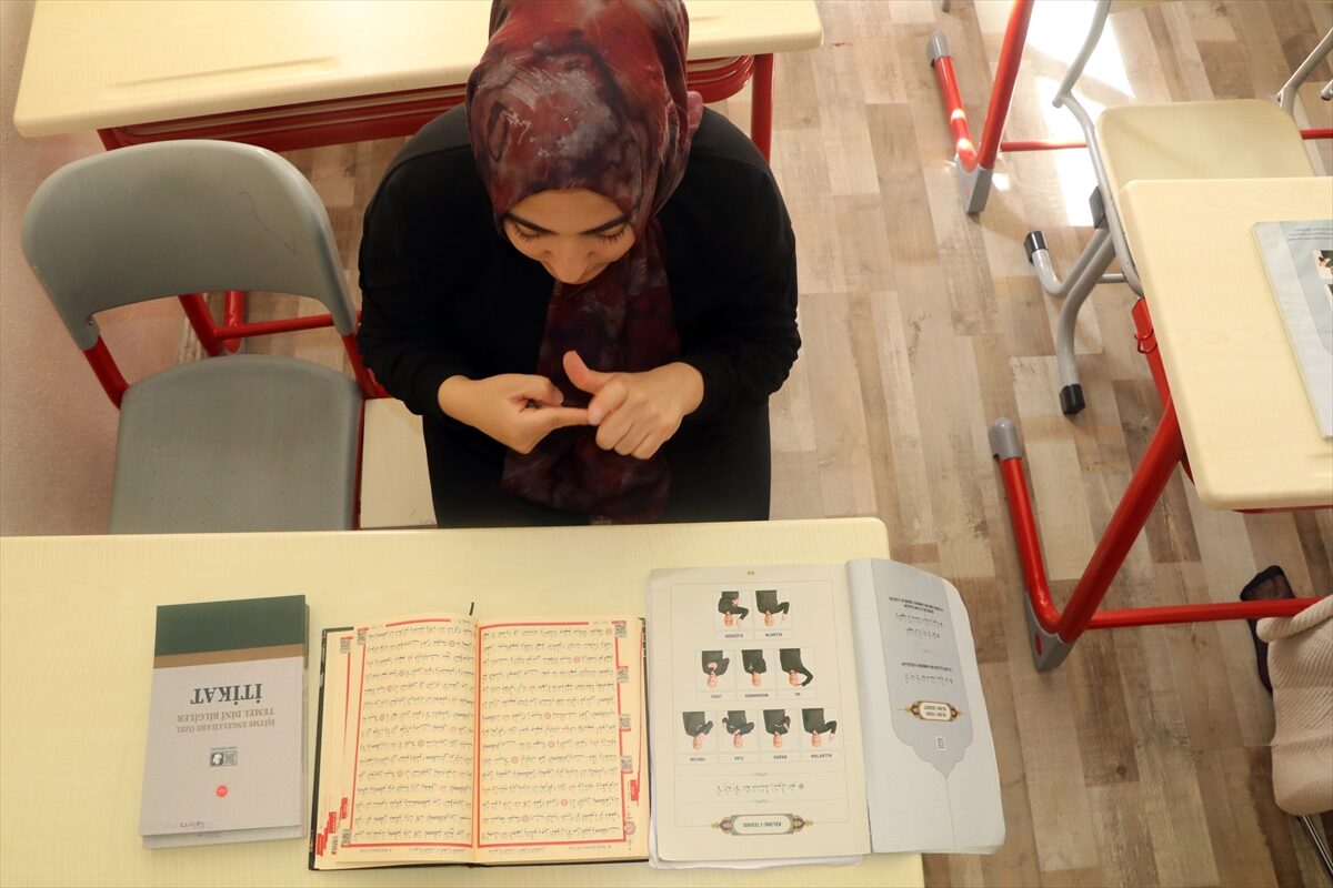 Çankırı’da açılan kursta işitme engelli kadınlar, işaret diliyle Kur’an-ı Kerim öğreniyor. İl Müftülüğünce 2022 yılında İmam-ı Azam Kur’an Kursu bünyesinde açılan kursta işitme engelli 3 kadına Kur’an-ı Kerim ve dini terimler eğitimi işaret diliyle veriliyor.