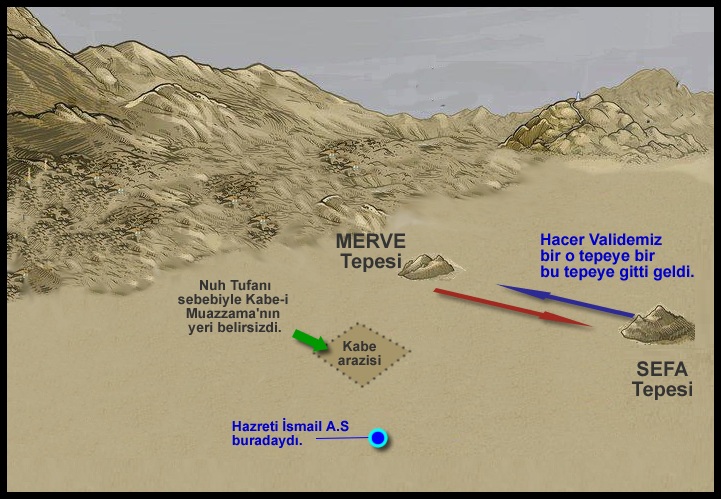 O bölgede içecek su dahi yoktu. Hz. İbrahim (a.s), hanımı ve oğlunu Mekkede Merve ve Sefa Tepelerinin oldugu yerin yakınına biraktı, Ve yemeleri için biraz hurma ve bir miktar da su bırakarak Merve ve Sefa Tepelerinin olduğu yerden ayrıldı. Merve ve Sefa Tepelerinin olduğu yerde ne yiyecek ve nede içeceğin bulunmadığı bu ıssız yerde kalmak Hz. Hacer’e çok çok zor gelmişti.