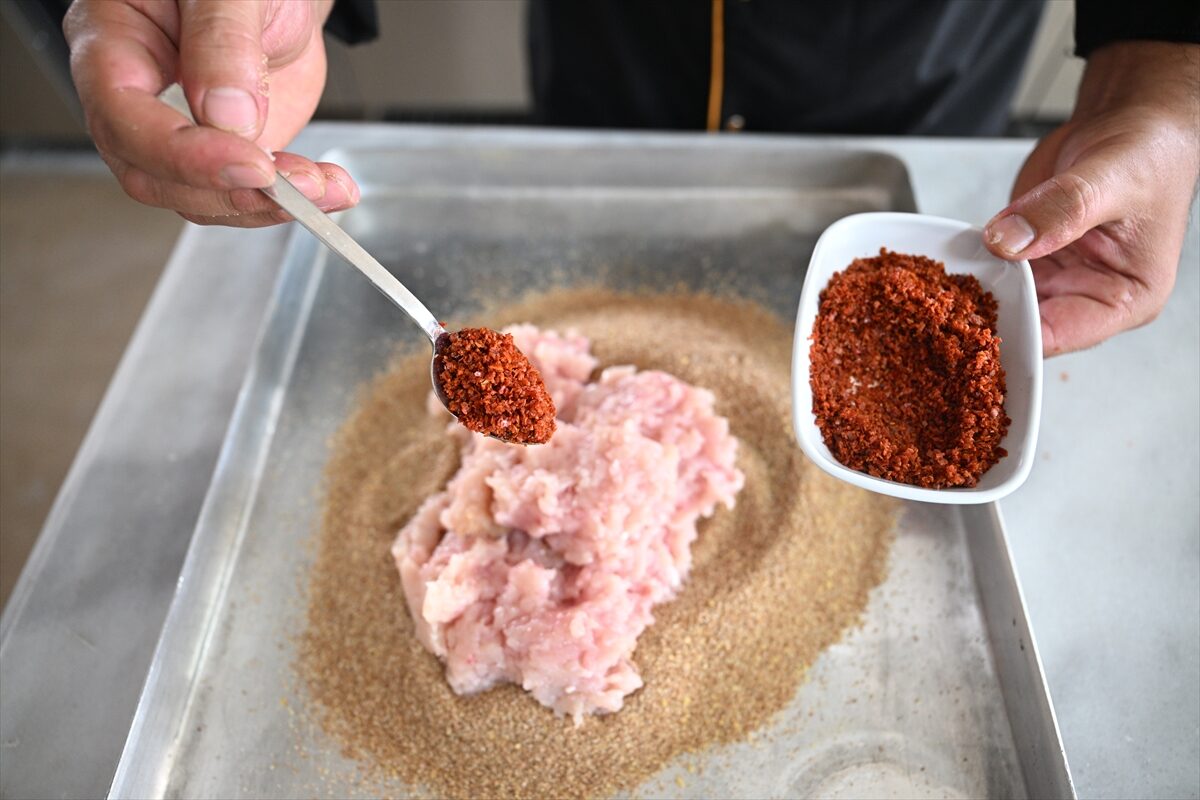 2. Üzerine tavuk kıyması eklenir.