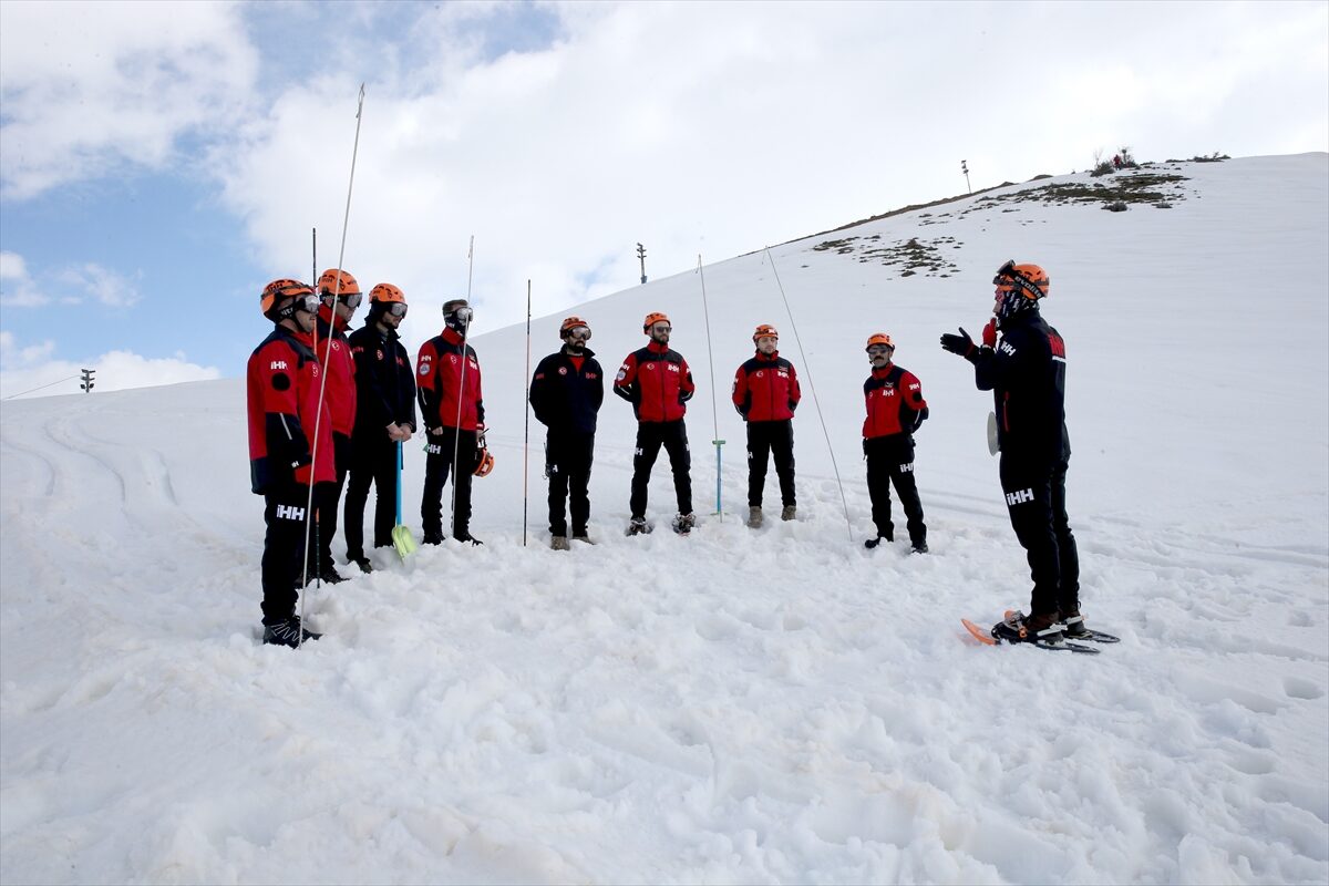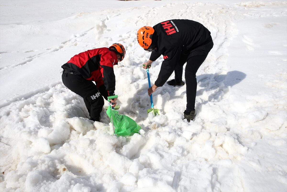 İnsan Hak ve Hürriyetleri (İHH) İnsani Yardım Vakfı Bitlis Şubesince gönüllülerden oluşturulan arama kurtarma ekibi, olası çığ olaylarına hızlı ve etkili müdahale için karda eğitim alıyor.