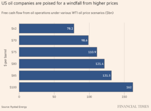 Enerji araştırma şirketi Rystad’a göre, ABD petrol fiyatları yüksek seviyelerde kalır ve bu yıl ortalama 100 dolar varil fiyatına ulaşırsa, şirketler petrol üretiminden 63,4 milyar dolarlık bir artış elde edecek.