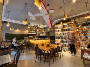 Bir sürü tatlı insanın olduğu bu güzel mekânda kahvemi yudumlayıp kitabımı okuyorum. Almanca, İngilizce konuşan genç Türk çalışanlar, Almanca ya da İngilizce sipariş veren müşteriler. Dışarıda güneşli ama soğuk bir hava. Sıcak, sarı bir ışıkla aydınlanan kare bir salon, duvarlarında Almanca, İngilizce ve Türkçe kitaplar. Gelecek ay burada bir söyleşi yapacağım.