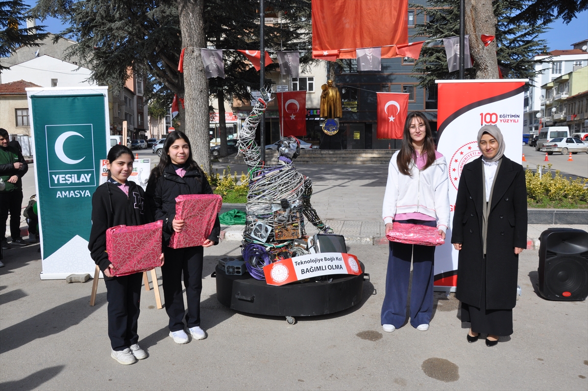 AMASYA (AA) – Amasya'nın Gümüşhacıköy ilçesinde dijital bağımlılığa dikkati çekmek amacıyla atık elektronik malzemelerden "Dijital…