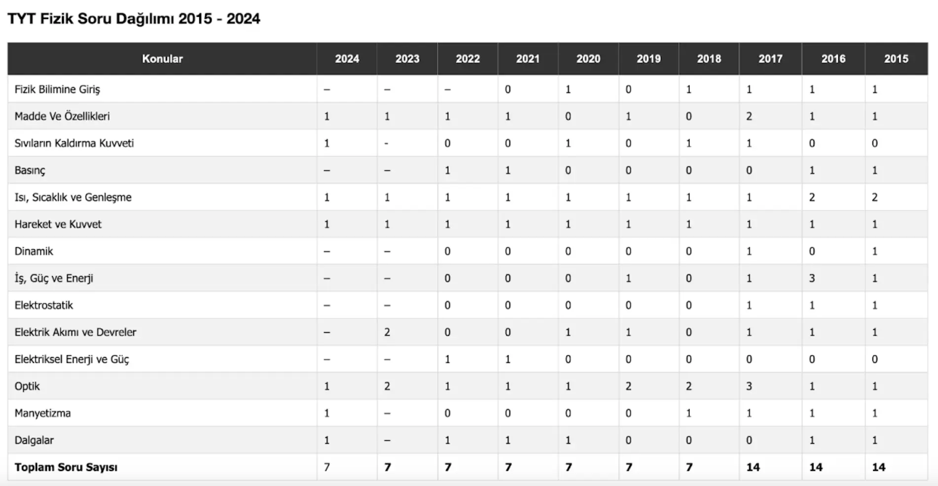 TYT FEN ÇIKABİLECEK KONULAR